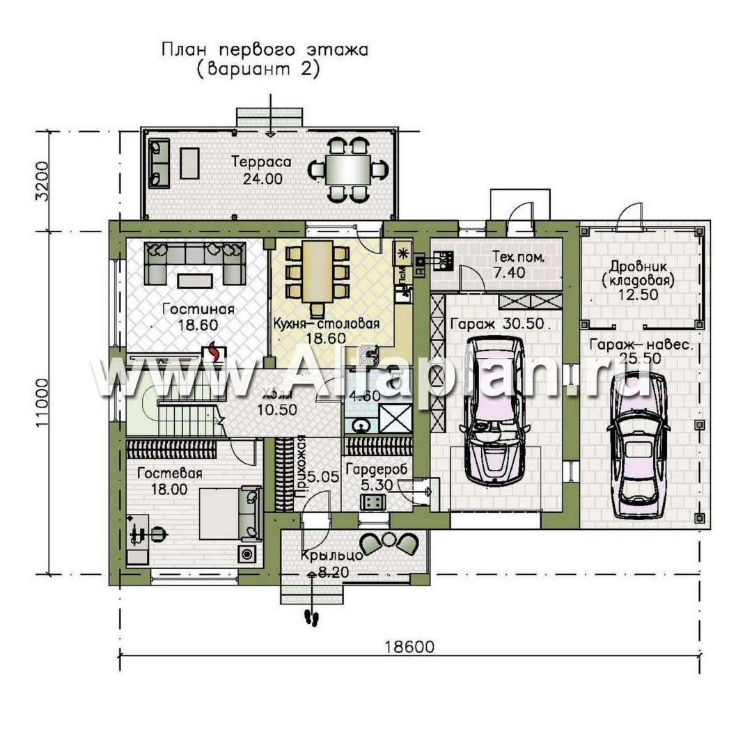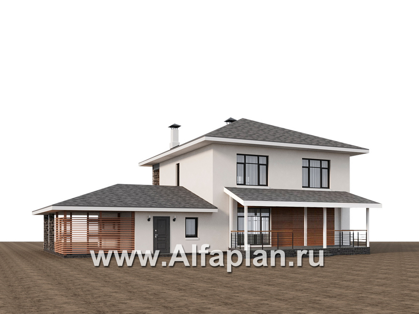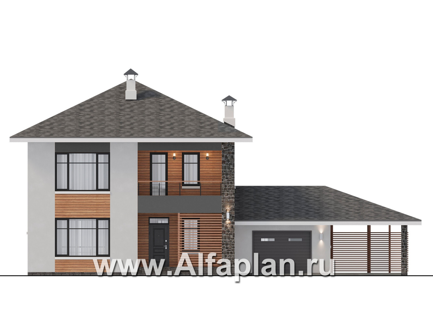 941B-2 «Селигер» - проект двухэтажного дома из газобетона, с гаражом на 2 авто, фасады из штукатурки
