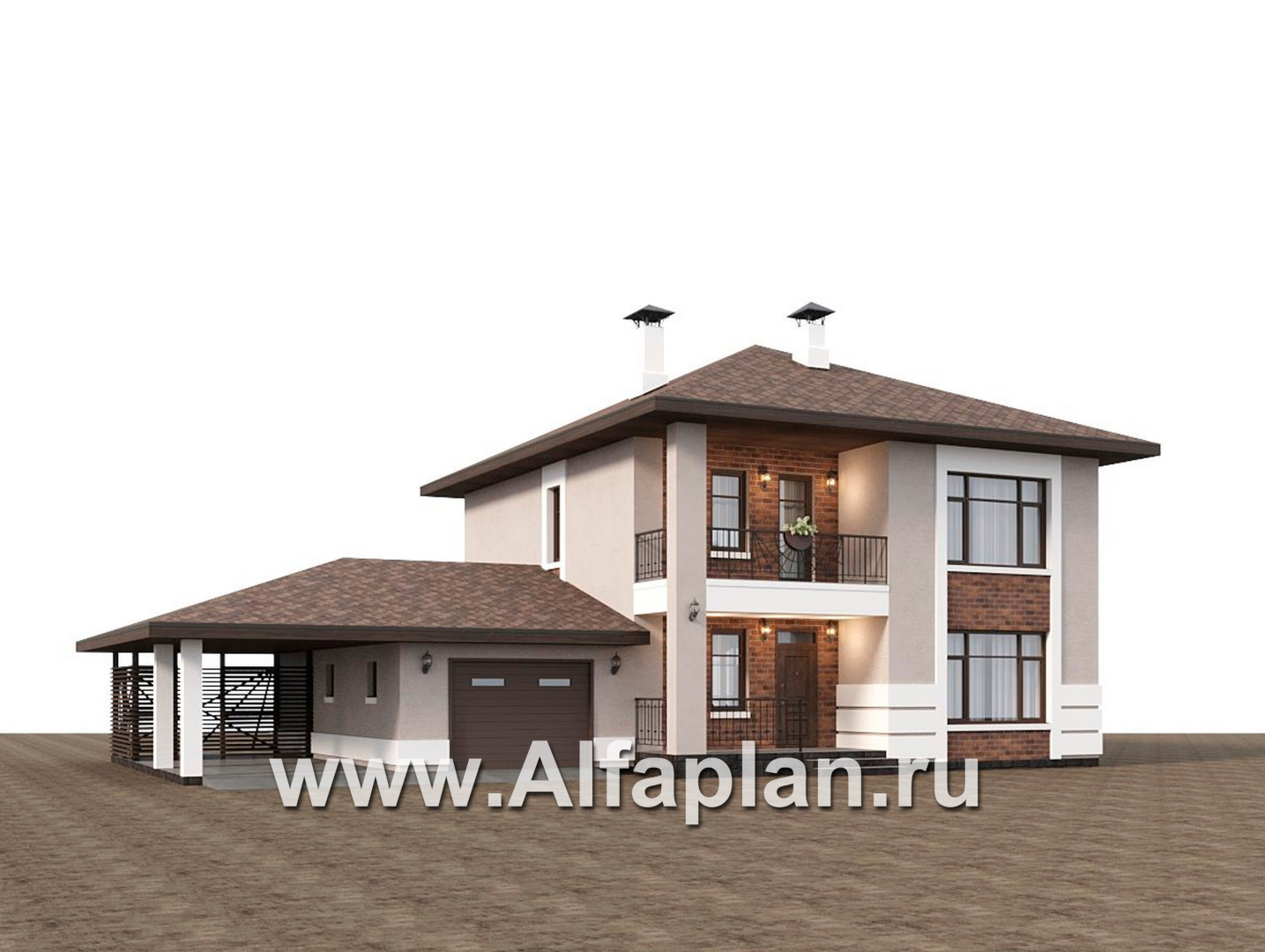 «Ладога» - проект двухэтажного дома из газобетона, с террасой, планировка с гаражом