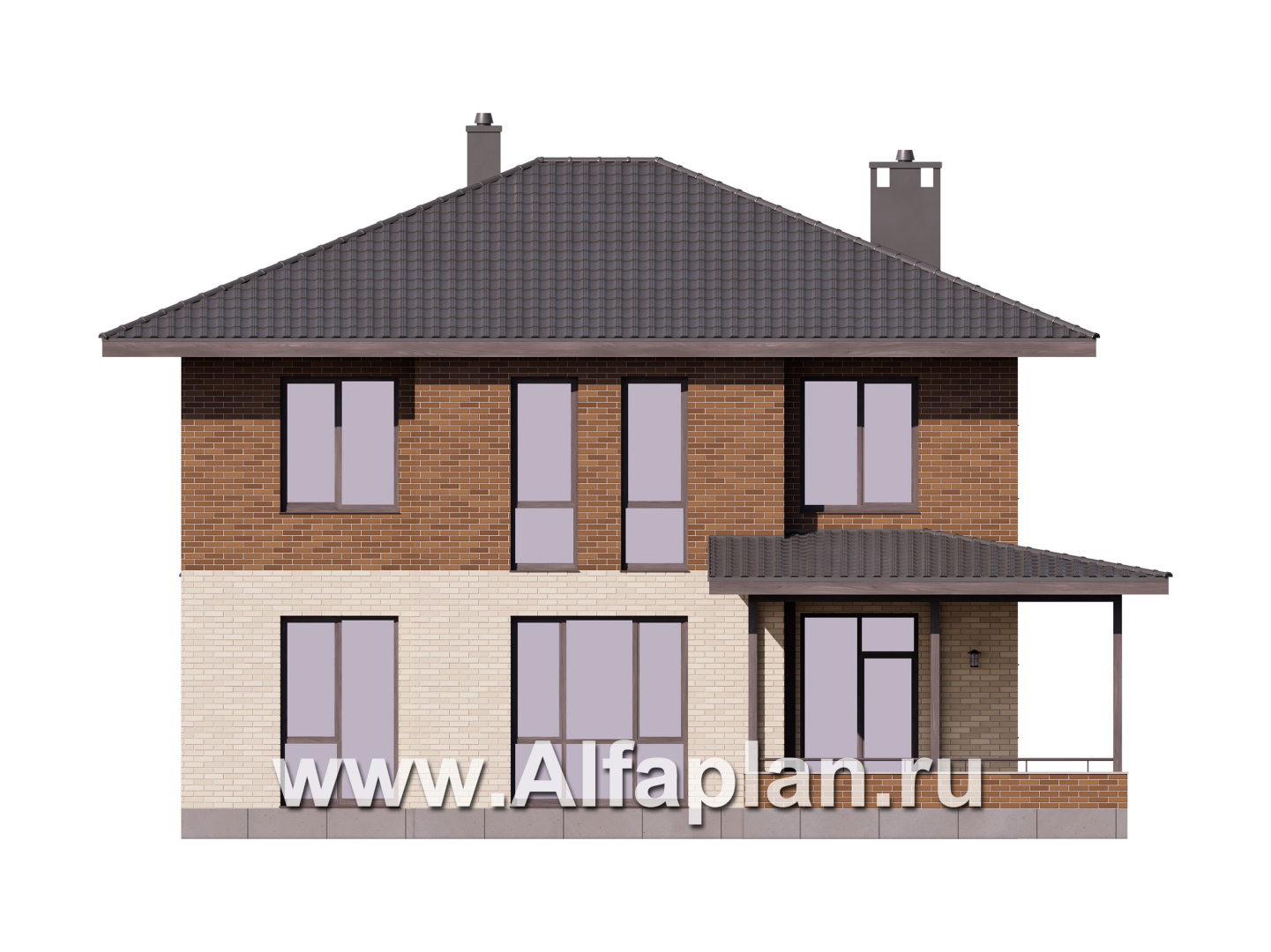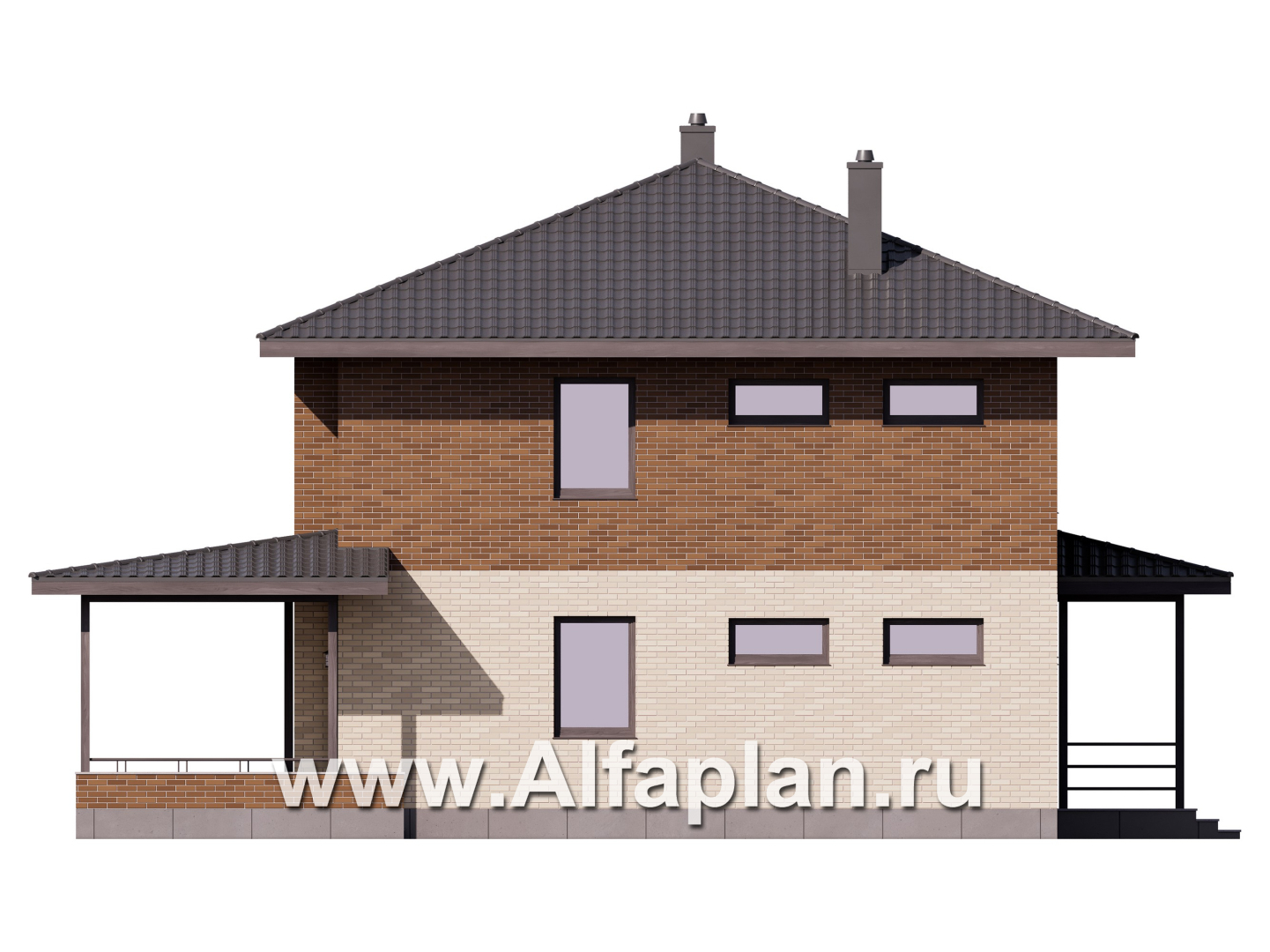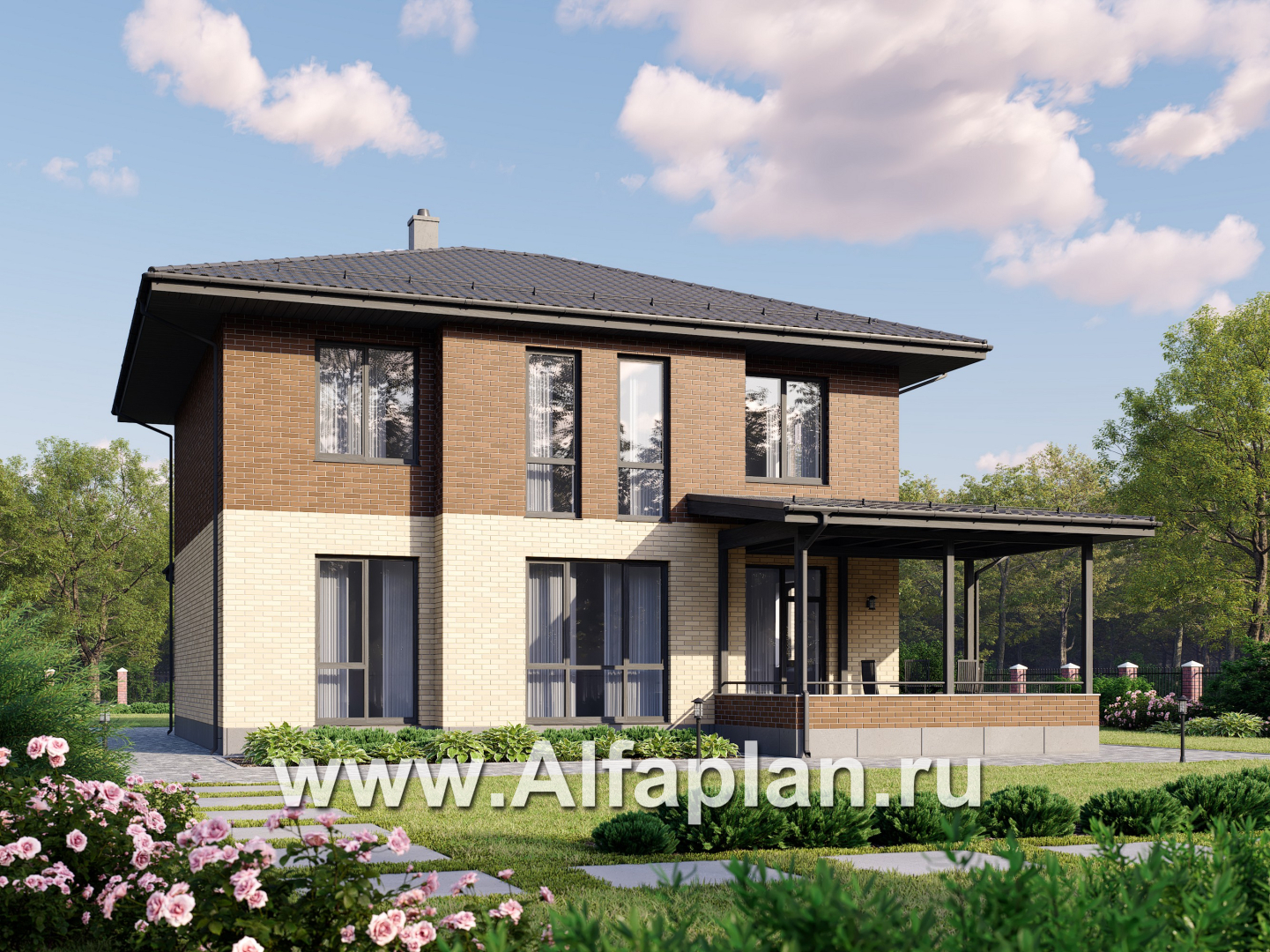 Проект двухэтажного дома из керамических блоков, ланировка в кабинетом на 1 эт, с террасой, в современном стиле