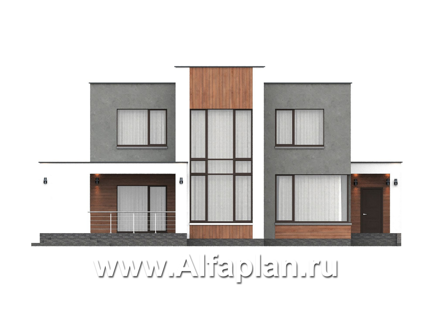 «Селектум» - красивый проект двухэтажного дома, планировка с мастер спальней, двусветная столовая, плоская крыша, в стиле минимализм