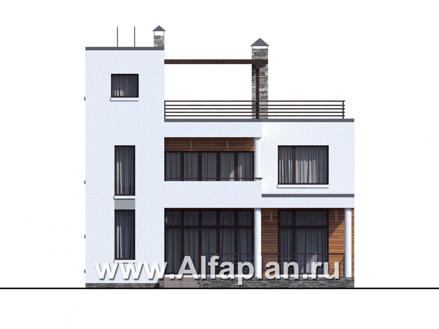 583A «Гоген» - проект двухэтажного дома из газобетона, с террасой, стиль баухаус с эксплуатируемой кровлей