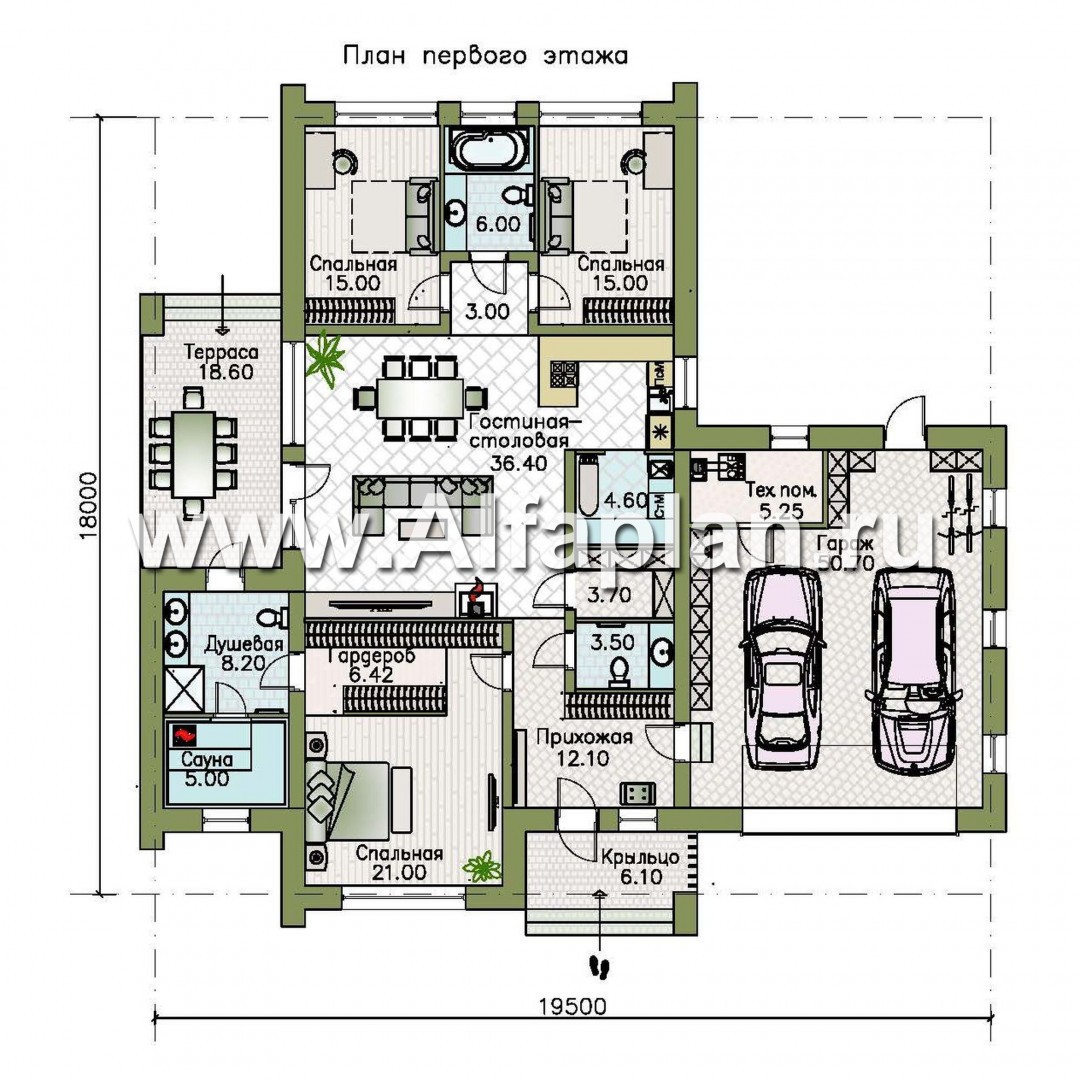 «Аркада» - проект одноэтажного дома, современный стиль, барнхаус, с террасой, сауной и с гаражом - технические характеристики