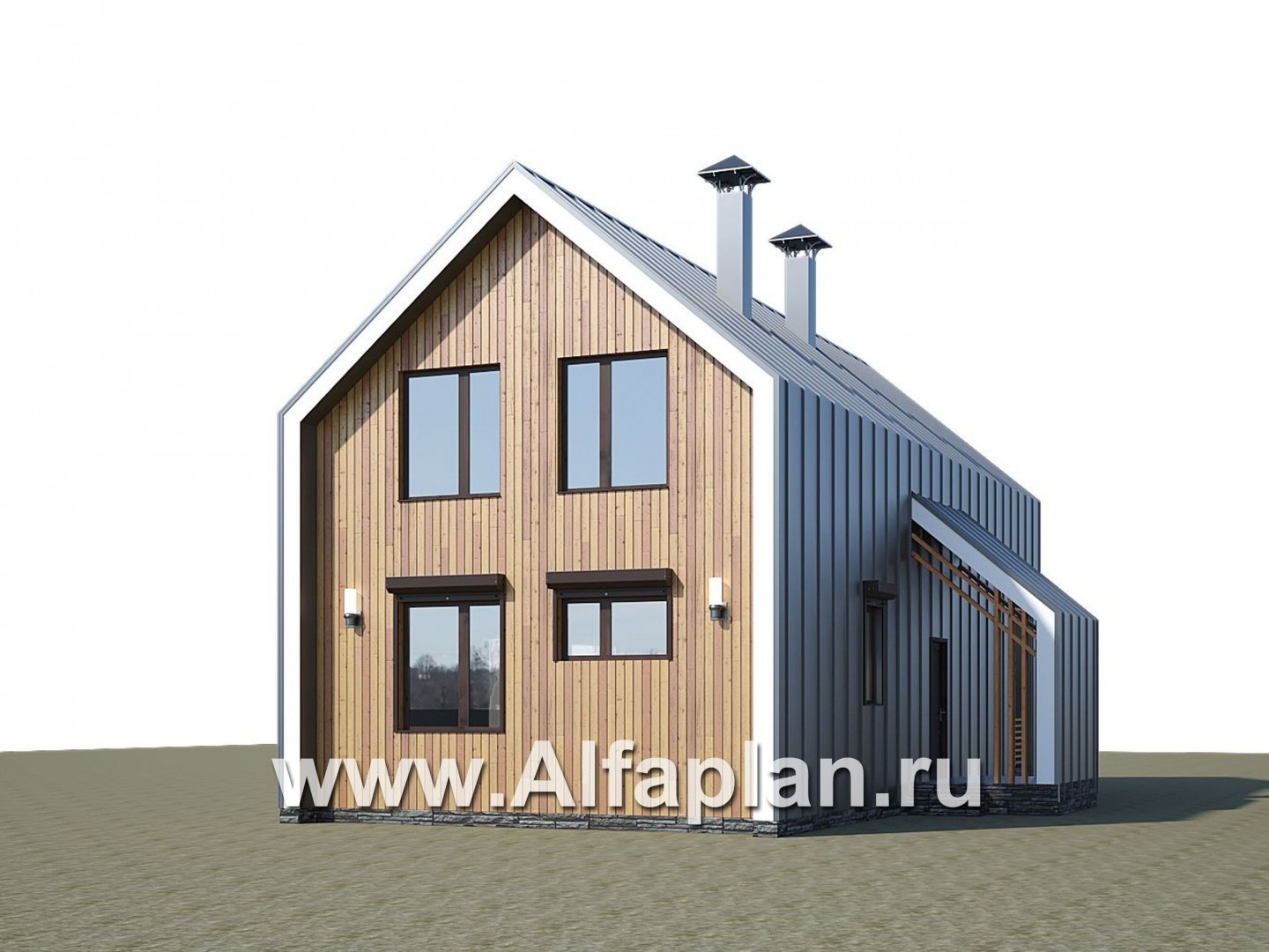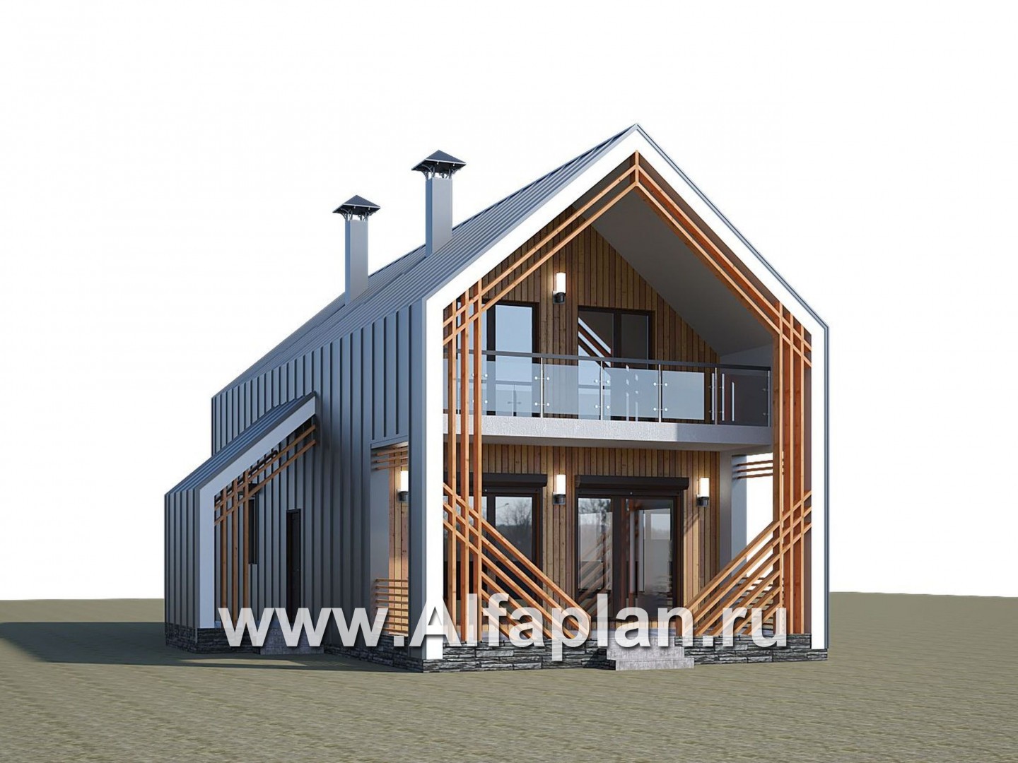 «Тау» - проект двухэтажного каркасного дома, с террасой и балконом, в современном стиле барн