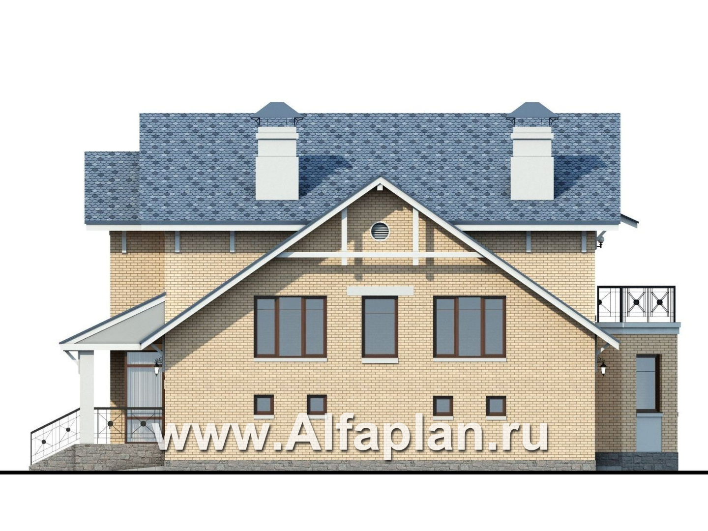 154A-S «Дженни Врен» - проект двухэтажного дома из кирпича с фото, планировка с эркером и с гаражом, в русском стиле