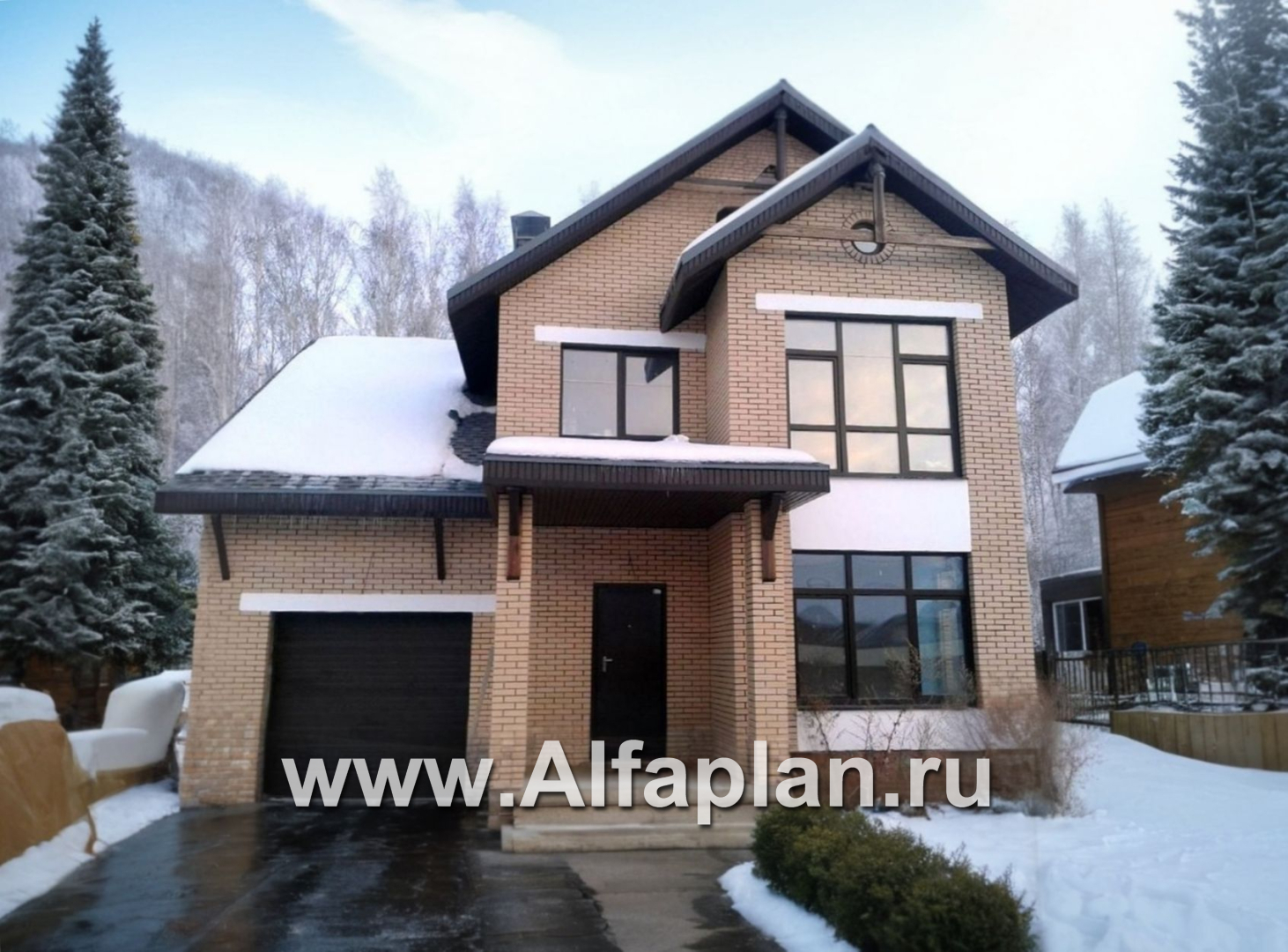 «Дженни Врен» - проект двухэтажного дома из кирпича с фото, планировка с эркером и с гаражом, в русском стиле - технические характеристики