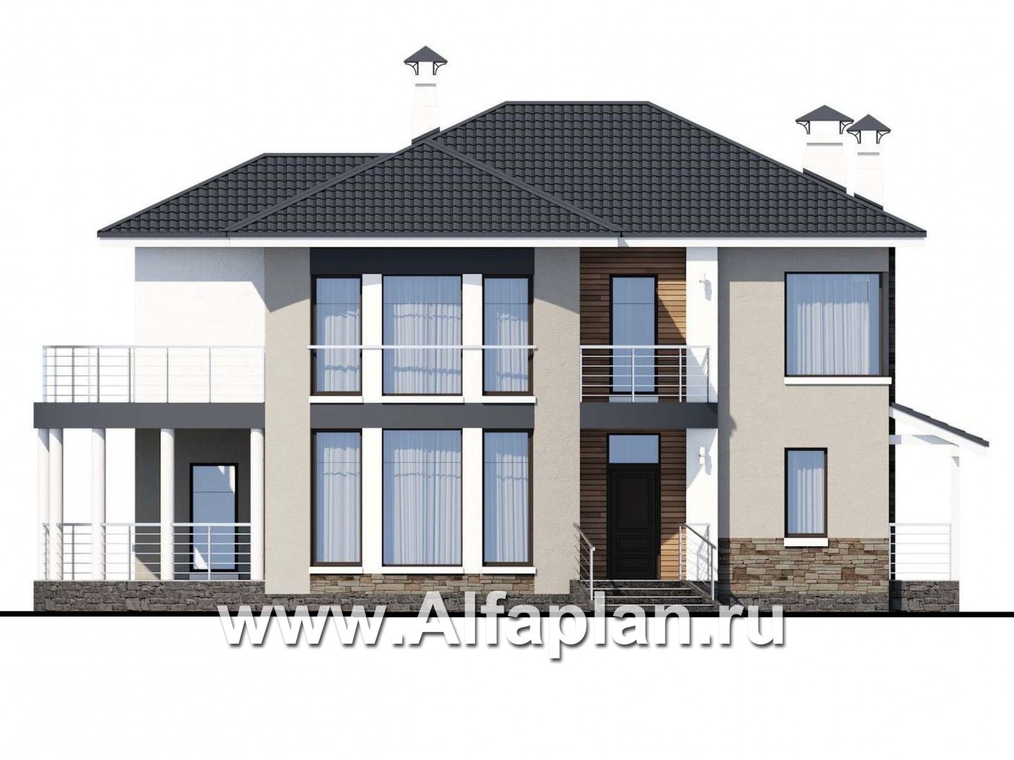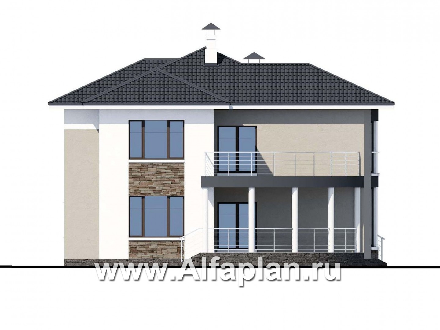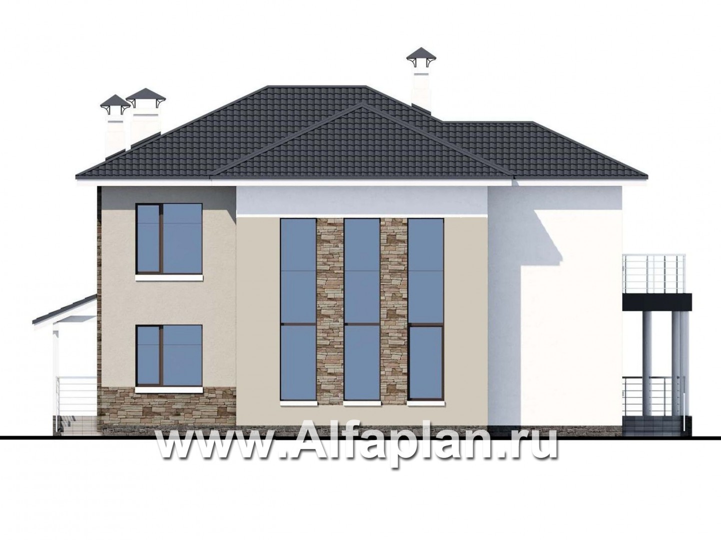 «Меркурий» - проект двухэтажного дома, с террасой и балконом, столовая со вторым светом, островной камин - технические характеристики