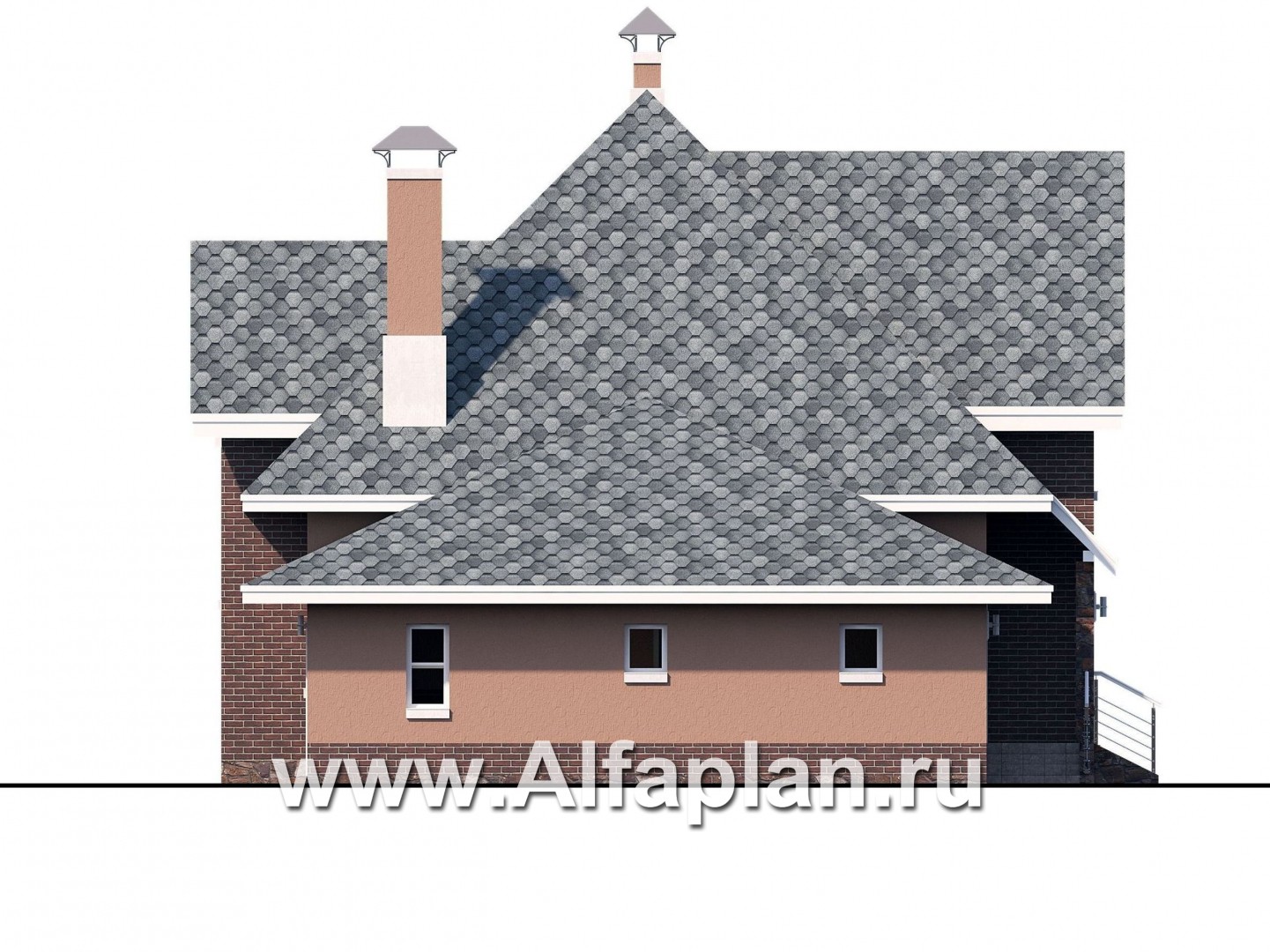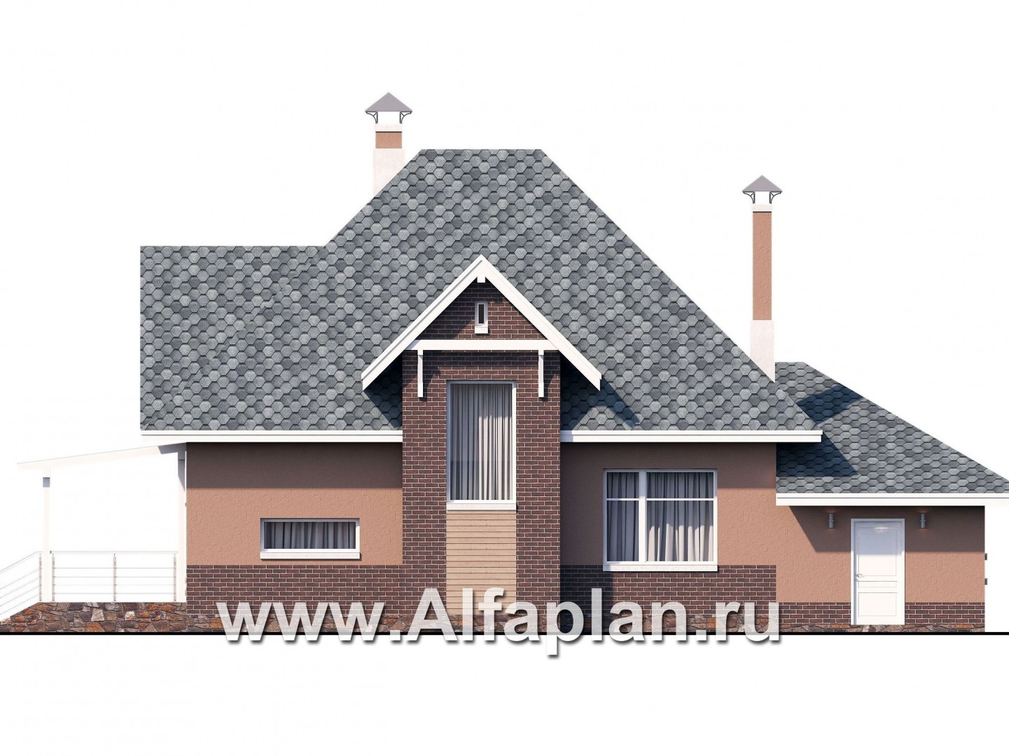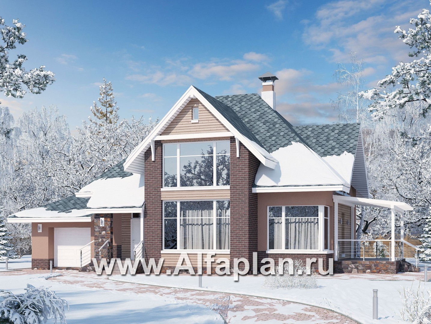 «Домик в Коломне» - проект дома с мансардой из газобетона, с террасой и с гаражом