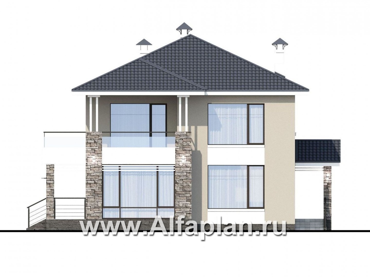 565A-S «Belissimo» - проект двухэтажного дома, в современном стиле, мастер спальня, с верандой и балконом