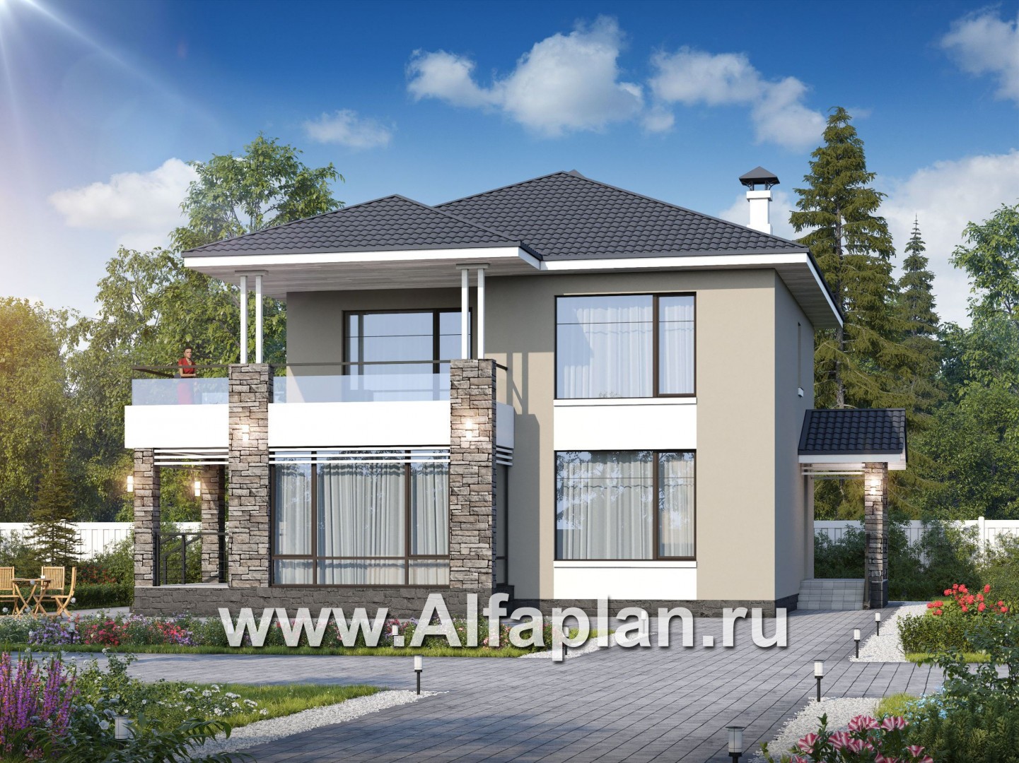 «Belissimo» - проект двухэтажного дома, в современном стиле, мастер спальня, с верандой и балконом