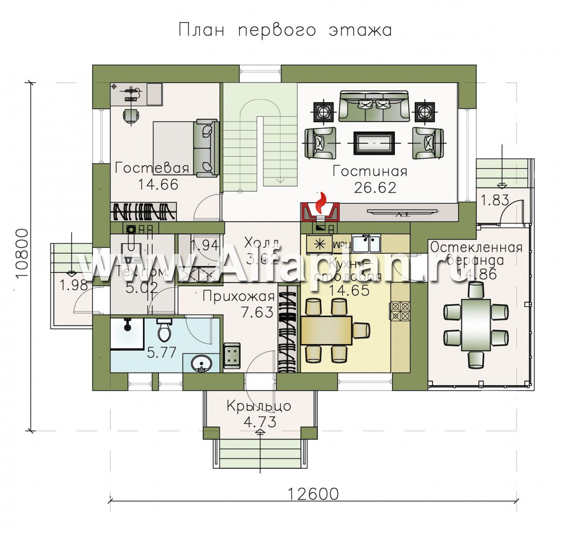 566A-S «Соблазн» - проект двухэтажного дома из газобетона, с остекленной верандой