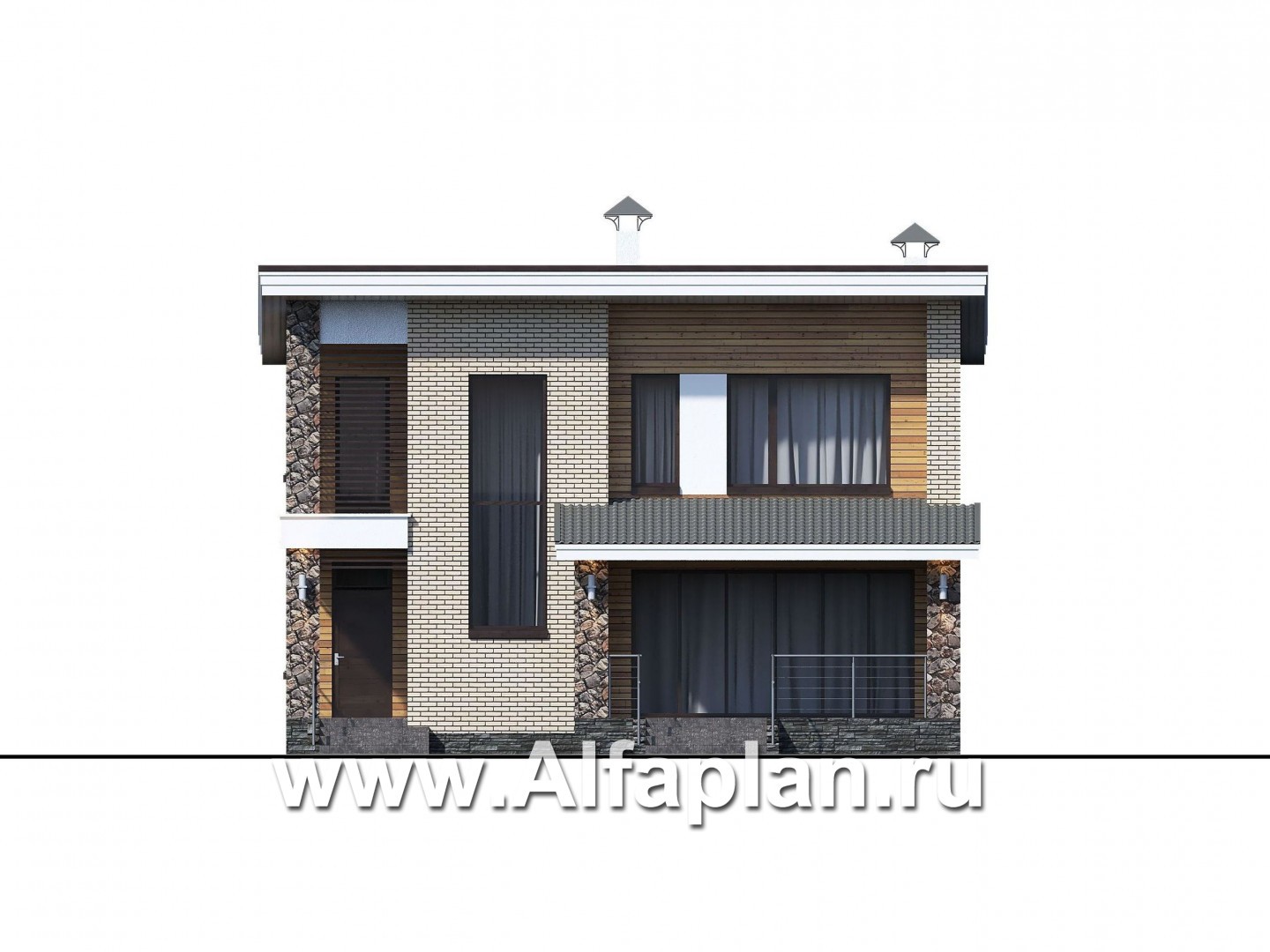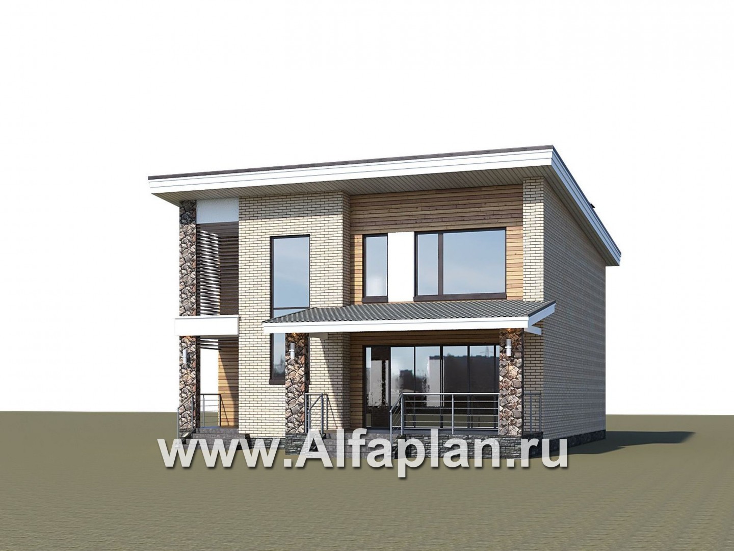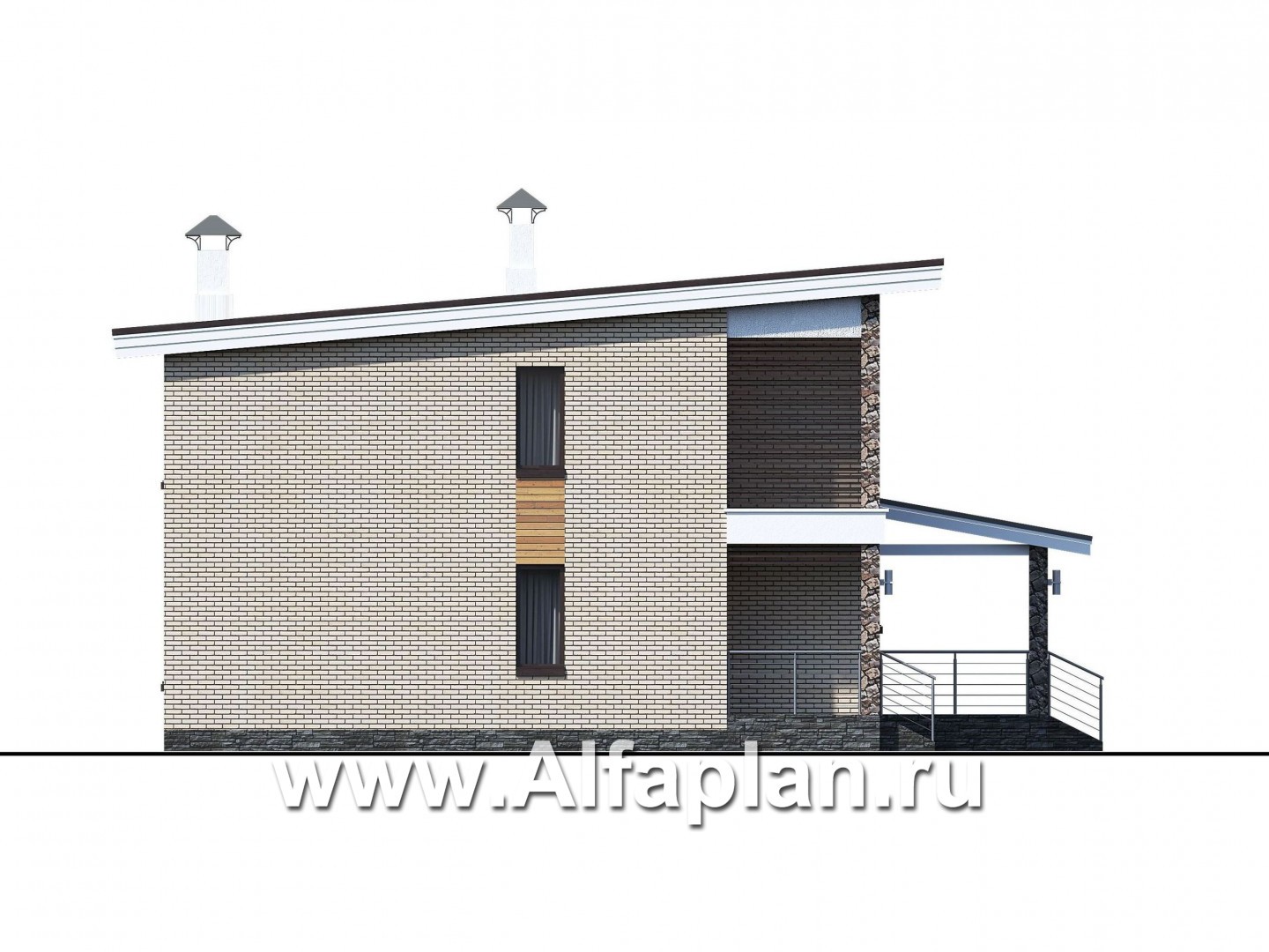 «Эрго» - проек дома 10х10м, планировка с террасой со стороны входа, с односкатной кровлей