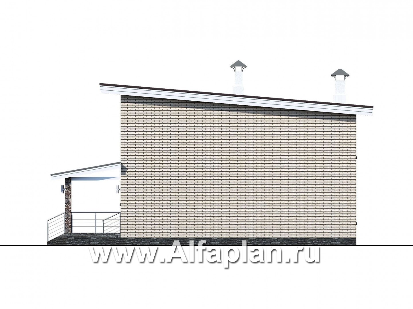 «Эрго» - проек дома 10х10м, планировка с террасой со стороны входа, с односкатной кровлей - технические характеристики