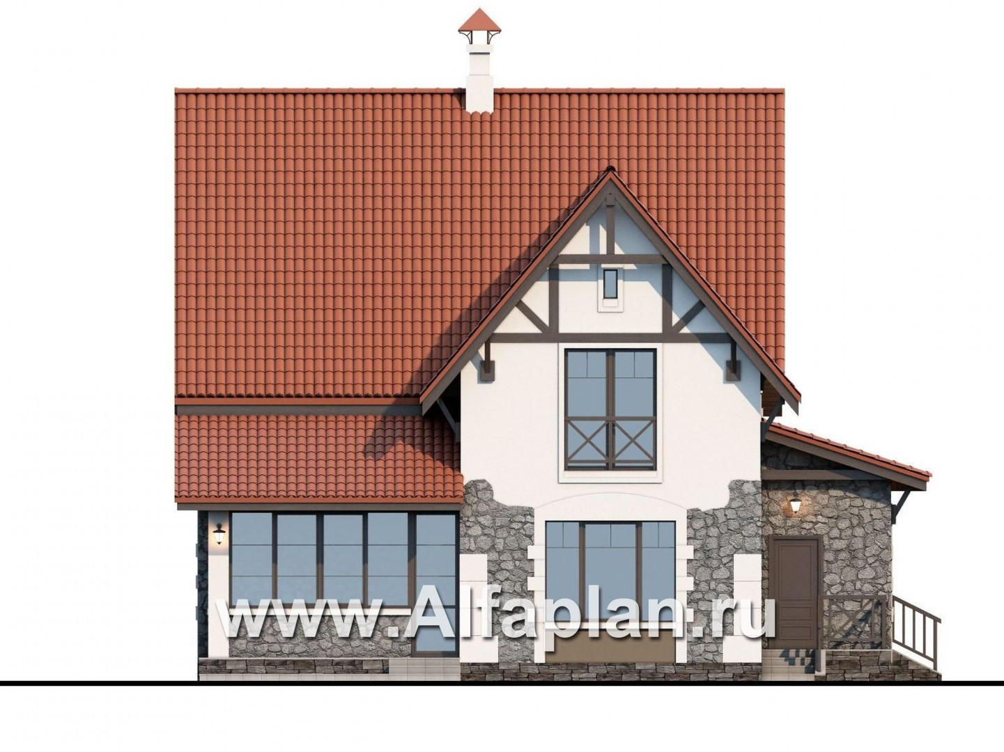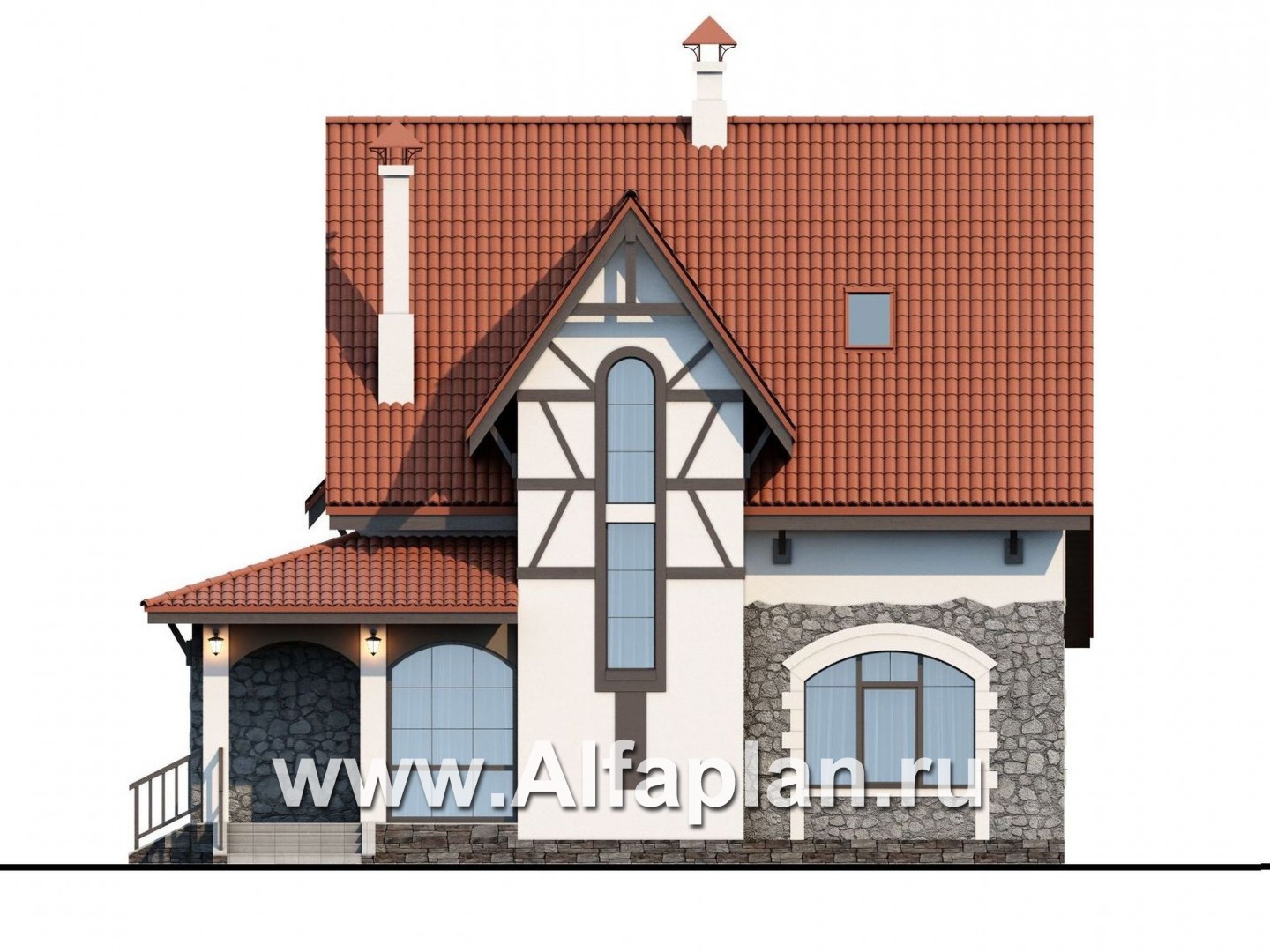 499A «Госпожа Буонасье» - красивый проект двухэтажного дома с мансардой, из газобетона, в стиле фахверк