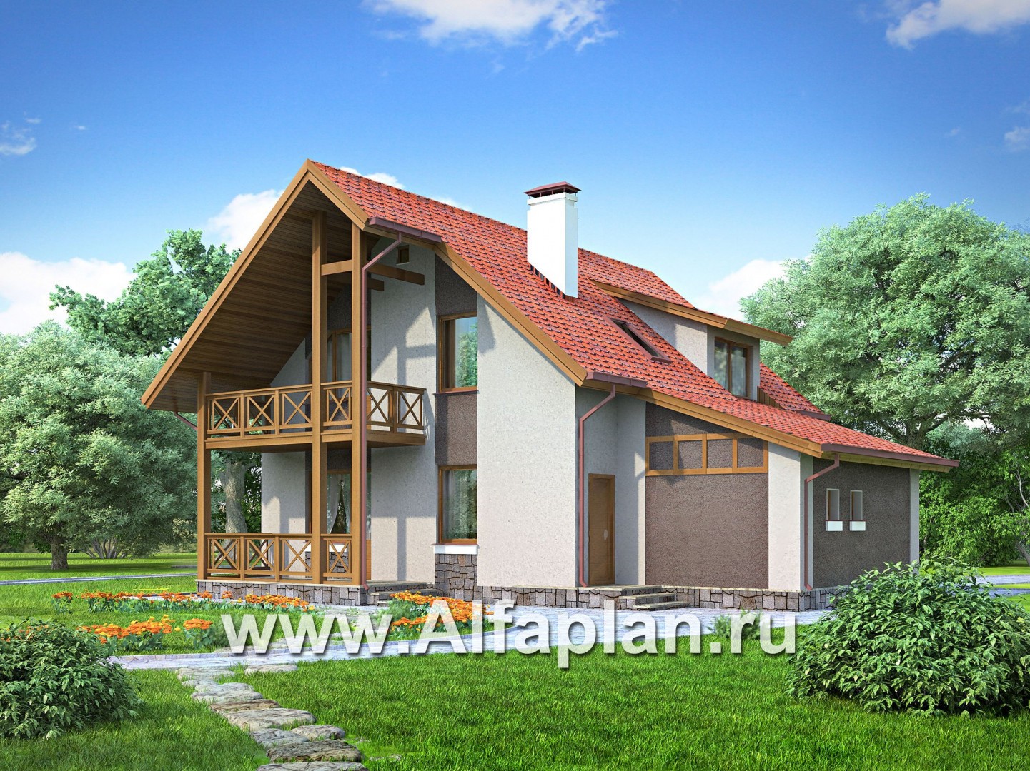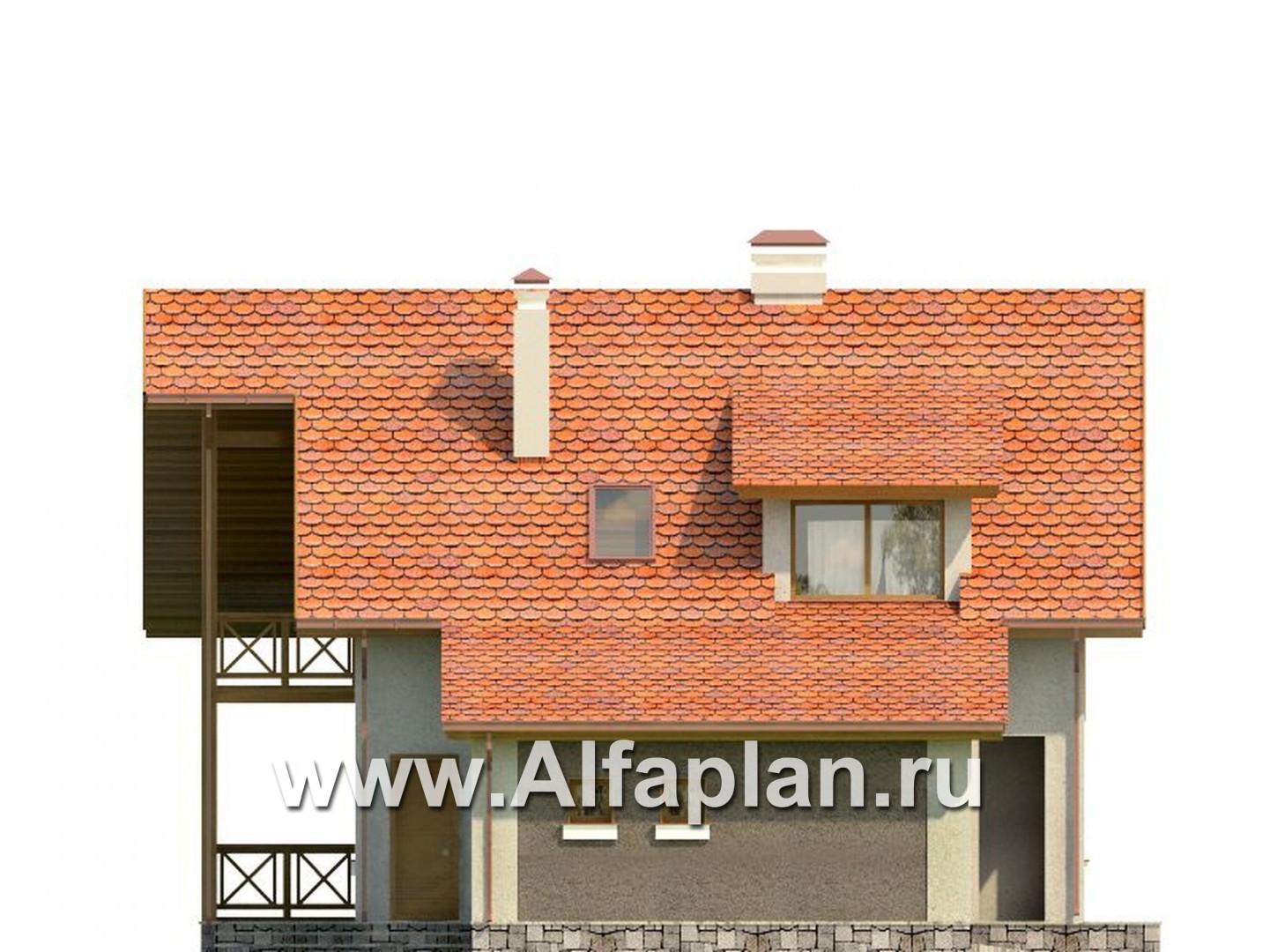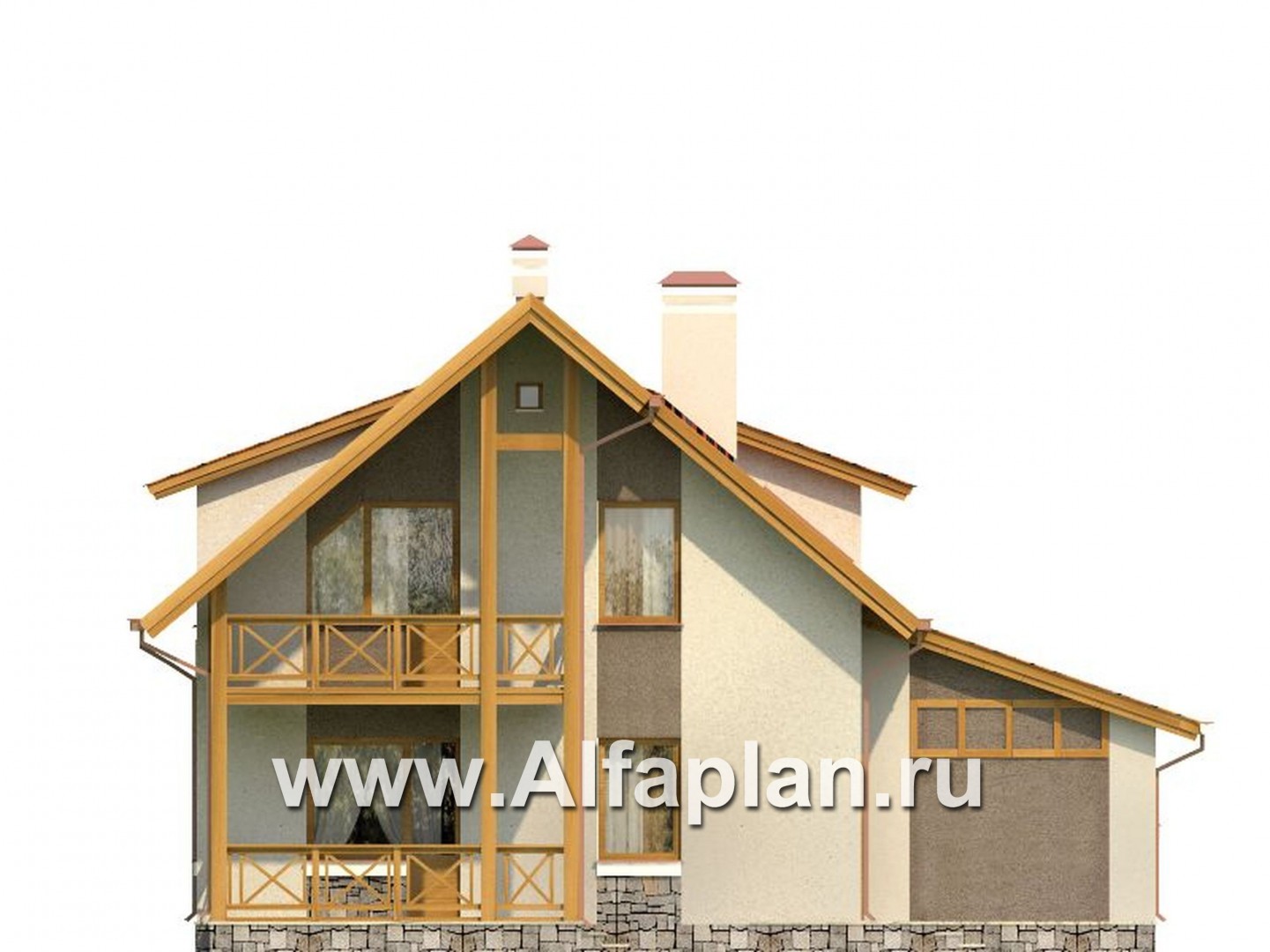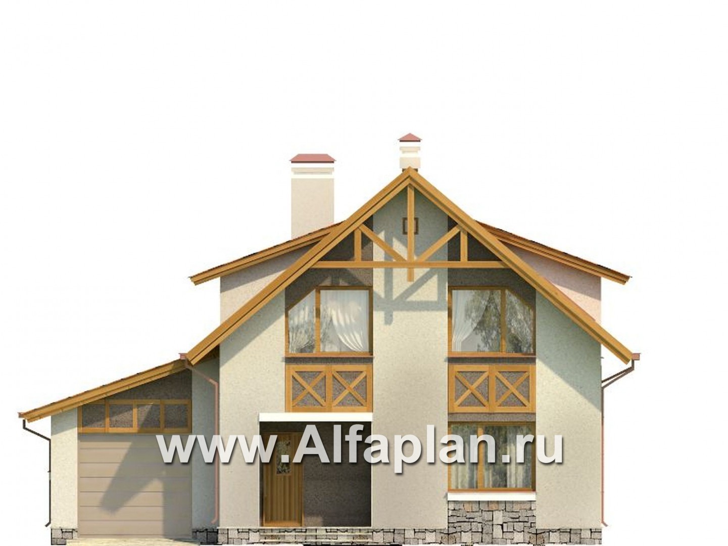Проект дома с мансардой, 3 спальни, с террасой и с гаражом, дачный коттедж