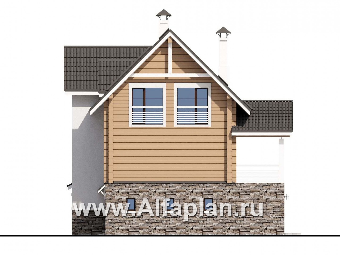 840B «АльфаВУД» - проект дома с мансардой, из дерева, на цоколе из кирпича, с сауной и с гаражом