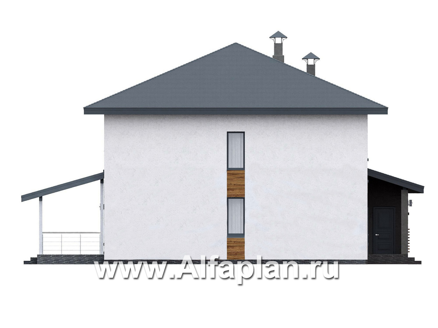 1053A «Чистая линия» - проект дома, 2 этажа, мастер спальня, с террасой, кладовая на входе, в современном стиле