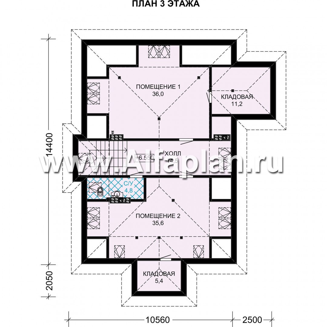 G53c-3 Проект двухэтажного дома с мансардой, планировка с гостевой и спальней на 1 эт, с террасой и с цокольным этажом